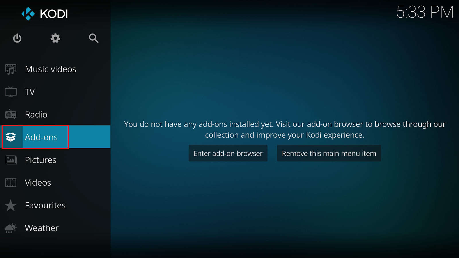 Din KODI Main Menu, navigheaza la Settings.