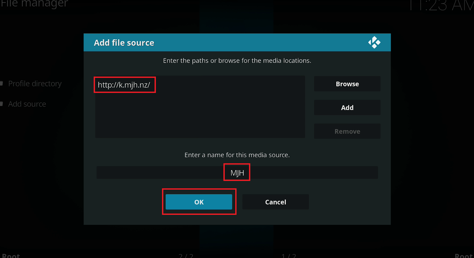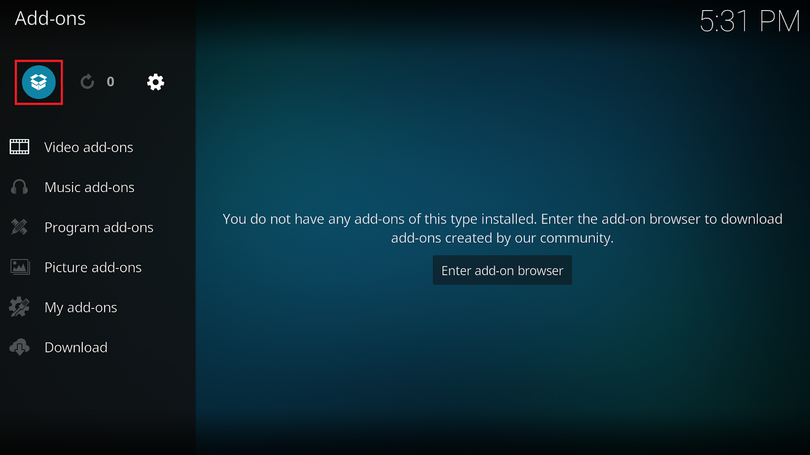 „System Settings -> Add-ons -> Unknown Sources” trebuie sa fie Enabled.