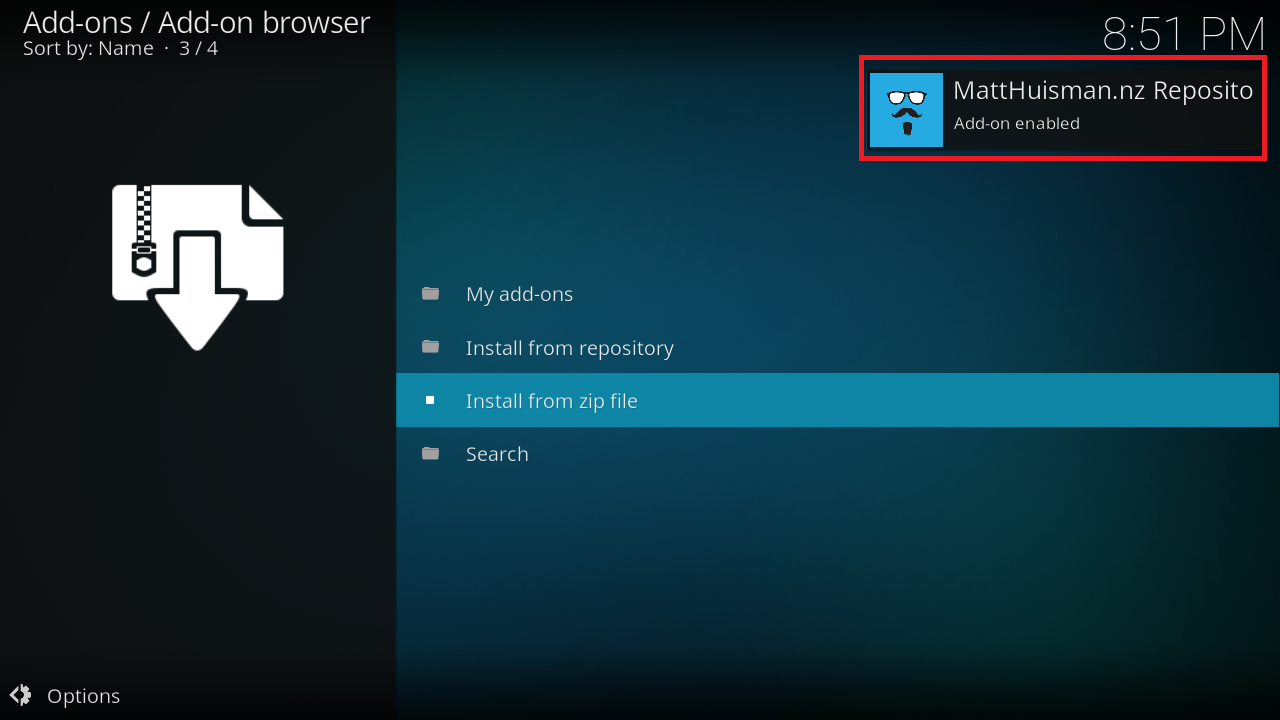 Selecteaza fisierul „repository.matthuisman.zip„.